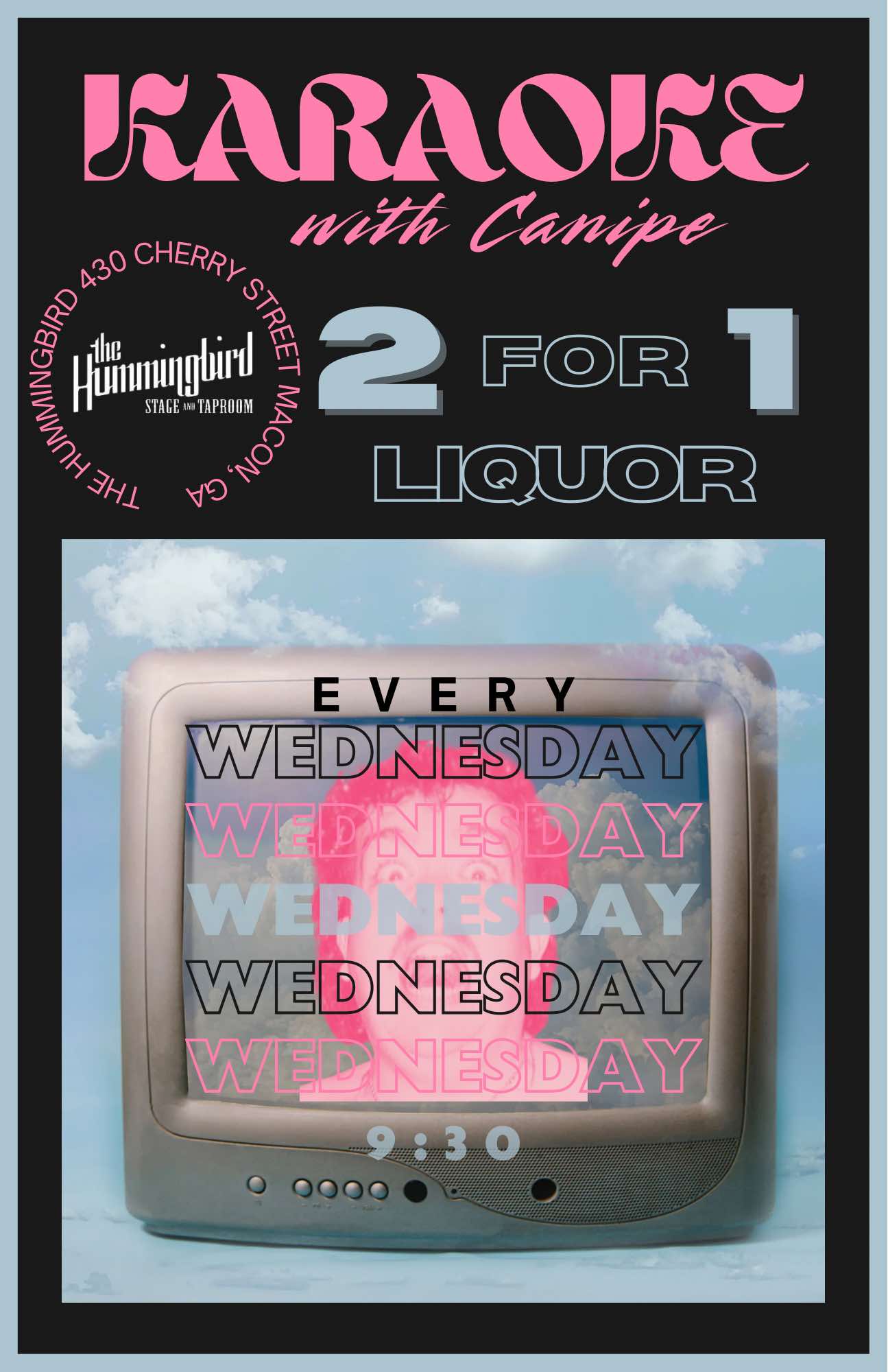 The Hummingbird 430 Cherry Street, MaconEnjoy 2-4-1 liquor while singing your favorite songs on the legendary Bird Stage! Karaoke hosted by Canipe starts at 9:30pm!