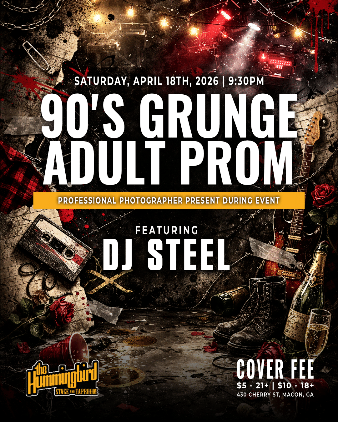 The Hummingbird 430 Cherry Street, Macon, GA, United StatesOn Saturday April 18th we invite you all to attend our Adult Prom. This year's theme was decided by YOU and it's 90's Grunge! We encourage you all to dress…