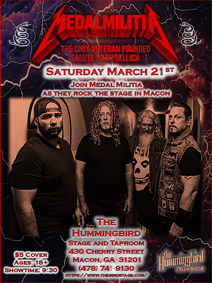 On Saturday March 21st, Medal Militia brings the thunder to The Hummingbird Stage & Taproom in Downtown Macon, GA for a night of nothing but Metallica.