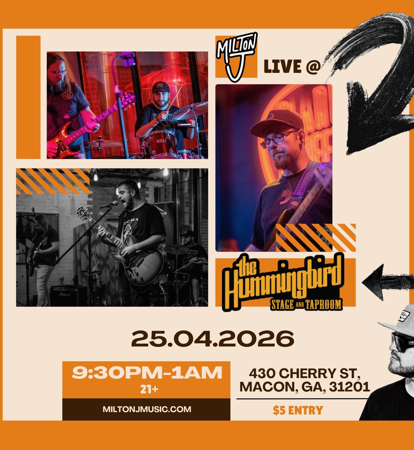 Come hang with us! Enjoy a full band performance at The Hummingbird Stage & Taproom. Thunderous Beats, Soul-Stirring Melodies & Raw Energy by Milton J.