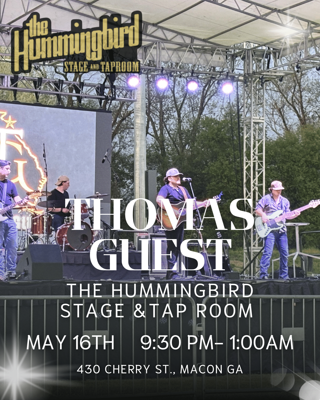 Local up and coming Country artist Thomas Guest is bringing his band to The Bird on Saturday May 16th for a night of boot tappin’ Honky Tonk! Music starts at 9:30pm. Must be 18 years or older to attend.